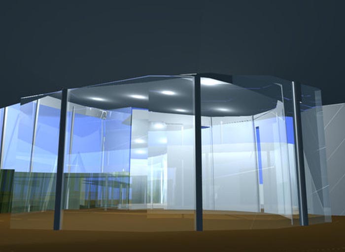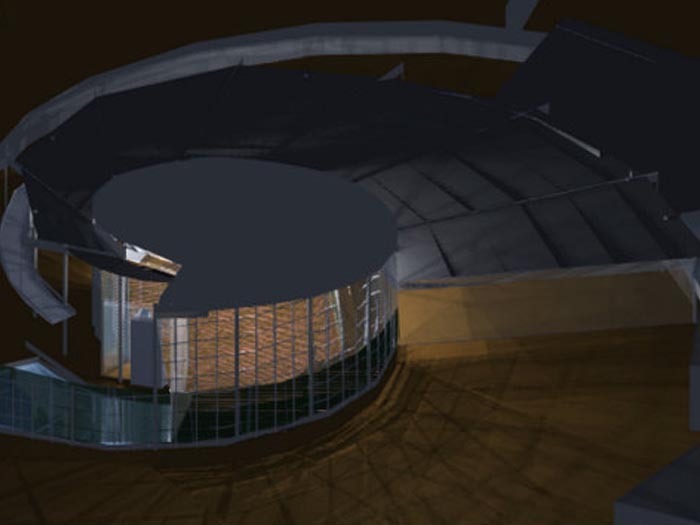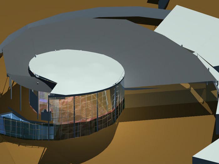 A new Temple for the 400 family congregation on the rolling planes outside Plano. The seven acre site is adjacent to a railroad line, car dealership and golf driving range, resulting in an inward focused scheme and creating protected courtyards and controlled views. A water garden in the small court off the sanctuary Bimah provides a shimmering reflections and the quiet sound of water to set the tone for the sanctuary and assures a coherent spiritual experience.