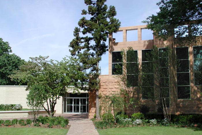 Taking advantage of the sloping site with entries on 2 different levels, a new southern edged addition was integrated with and built into the sloping front yard creating an appropriate entry for the lower, parking and drop-off level and added needed classrooms and storage.